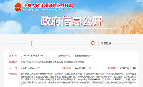 據農業農村部消息,南方稻區水稻機械化種植是我國糧食生產全程機械化的最大短板,正處于攻堅克難的關鍵階段。近日,農業農村部印發《關于扎實做好南方水稻機械化種植推...
